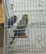 طيور حب (بادجي) زوجي ازرق ولاتينو عيون حمراء مع اقفاصهم