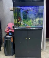 حوض سمك بكامل اغراضه مع طاوله وخزانه تحته وفلتر كبير