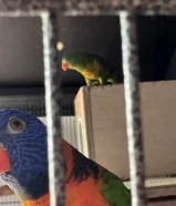 للبيع زوج ببغاء لوري وزوج صن كنيور وزوج فشر وعدد 2 زوج طيور حب بادچي بحالة ممتازة مع أقفاص جديدة